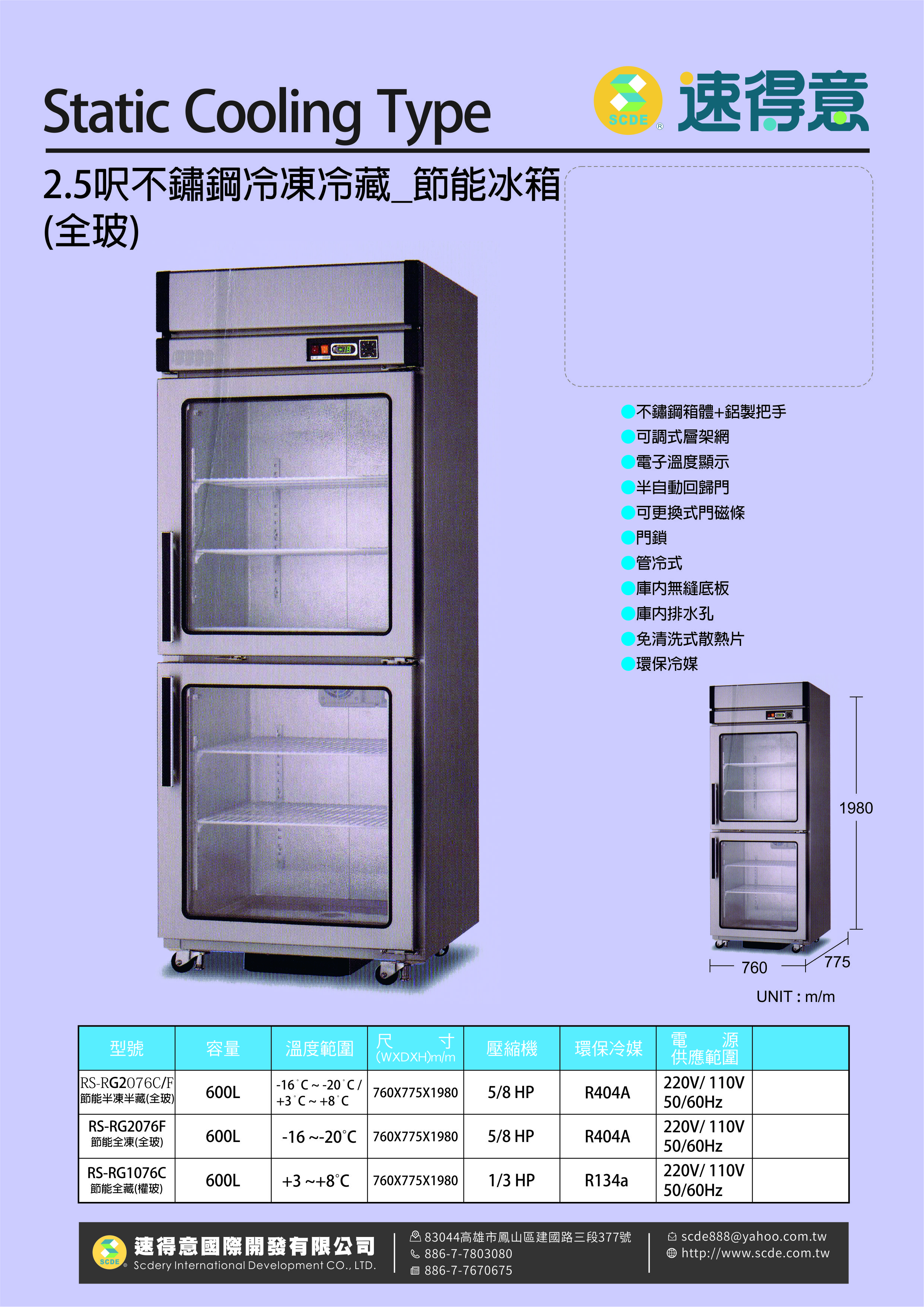 2.5呎不銹鋼冷藏冷凍節能冰箱(玻璃窗)