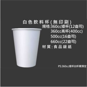 紙飲料杯(空白無印刷) 白色杯12盎司. 16盎司 . 22盎司 系列