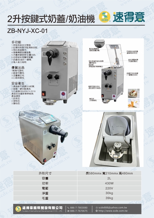 2升按鍵式奶蓋/奶油機 ZB-NYJ-XC-01